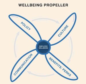 I created the ‘Wellbeing Propeller’ for organisations to start with the very foundations and ensure that each ‘fin’ is moving forward together…in alignment. If not, then the organisation won’t move forward efficiently or will steer off course. Building momentum stably and consistently means that your employee wellbeing will gain its own, self generating, momentum.